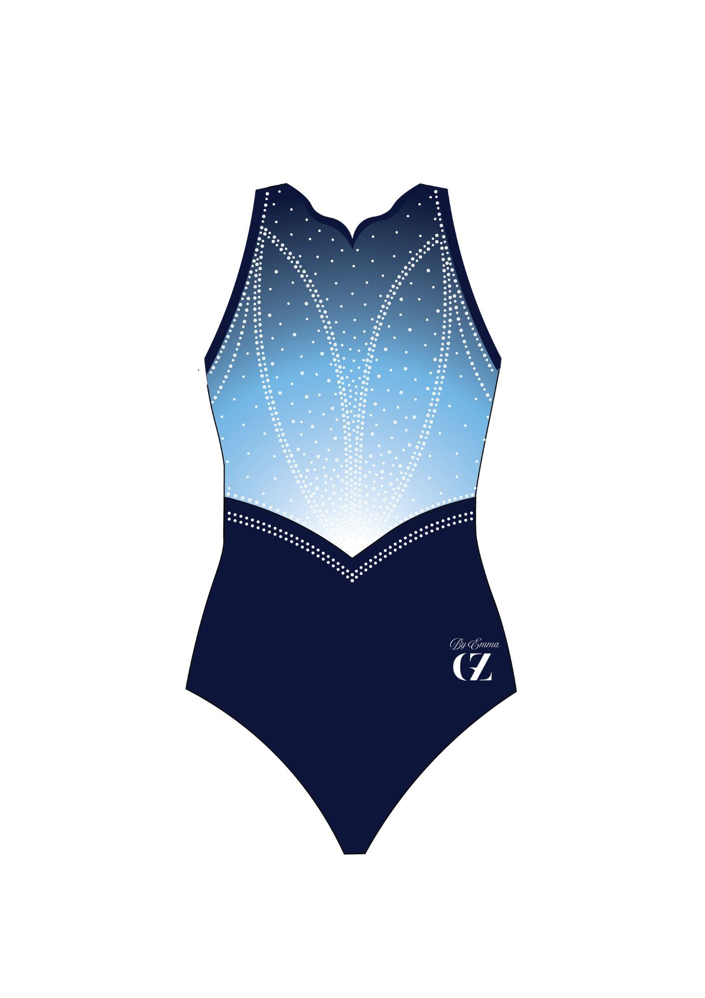 Ce justaucorps à manches courtes associe un bleu marine profond à un dégradé de tulle doux, souligné d'un tissu argenté brillant pour un éclat subtil. Pour parfaire le look, de délicats strass ont été ajoutés, captant la lumière sans surcharger le design. Le résultat est un justaucorps qui procure une sensation de douceur et de confort. Luxueux, équilibré et performant.